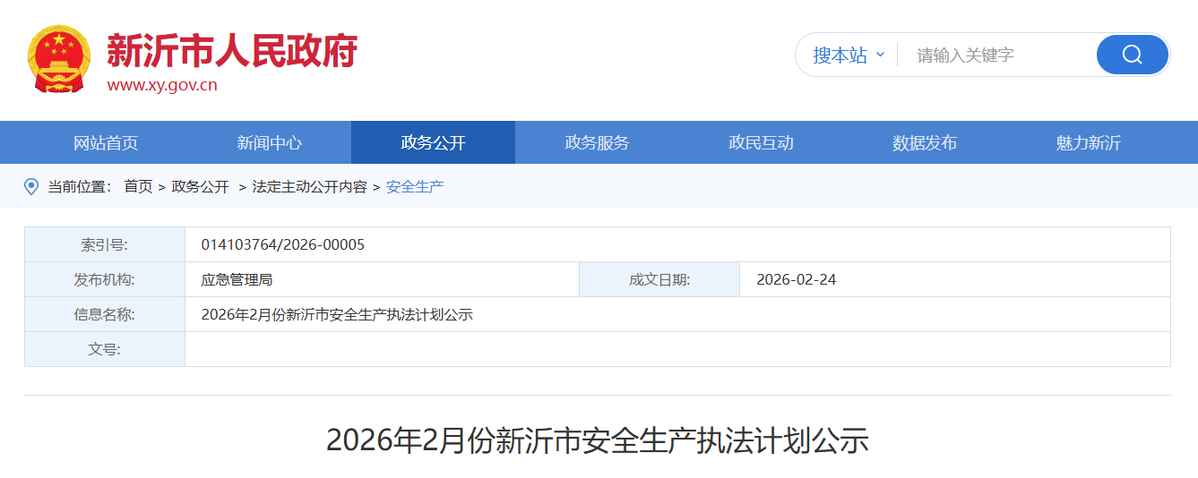 《2026年2月份新沂市安全生产执法计划公示》